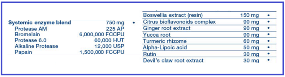1. Systemic Enzyme Blend (750 mg) – this could be the major ingredient, but there’s very little info about it.