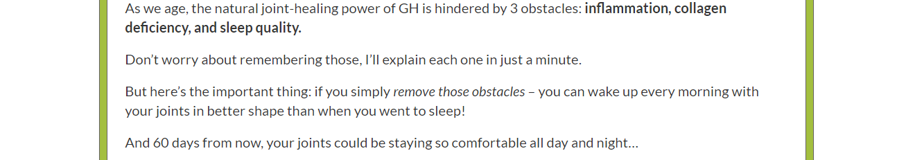 So here’s the thing – it claims to relieve every joint problems while you sleep. How exactly? Using one miraculous ingredient – growth hormone.