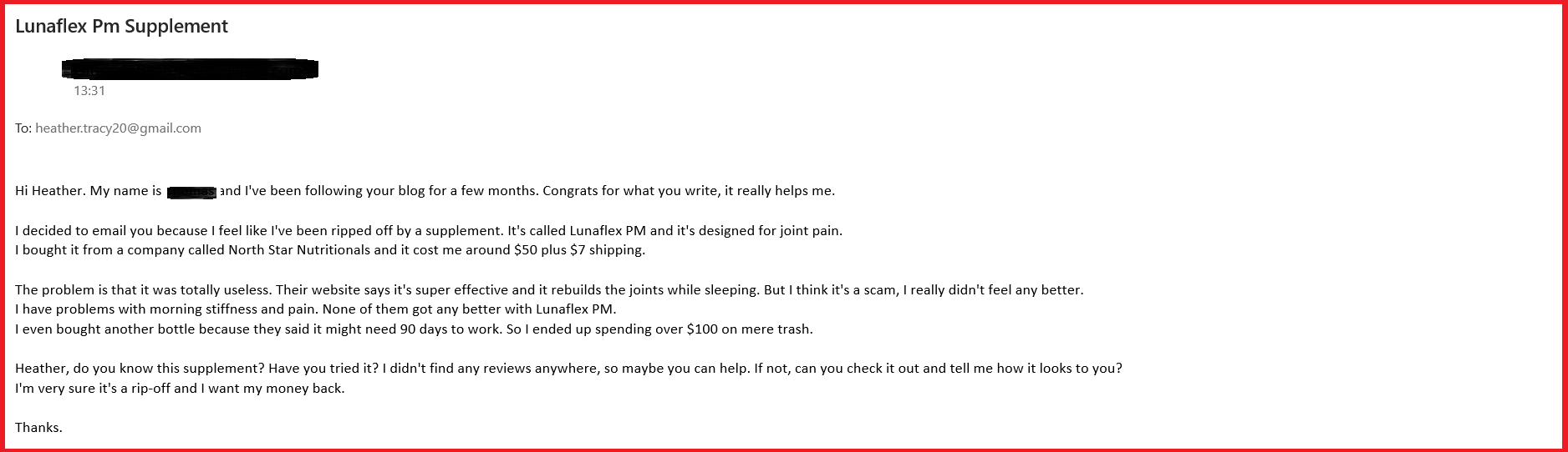 So why exactly did I review it? Well, I received an email from one of my readers – regarding LunaFlex. Here’s what he wrote me: