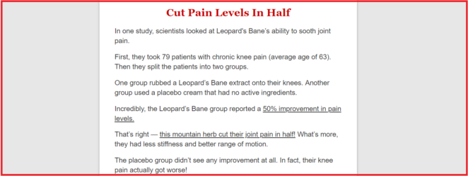 Instead – it focuses on emotion and tries to convince you that their formula can cure your joint pain miraculously. Which is totally not true.