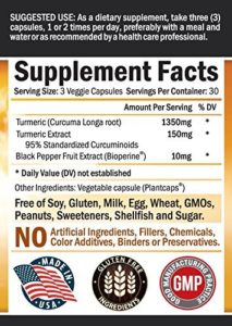 So overall, there are 1350 mg of pure turmeric, 150 mg of curcumin and 10 mg of bioperine. These are honestly great ingredients, as you rarely see this combination of 3 together. So thumbs up for now.
